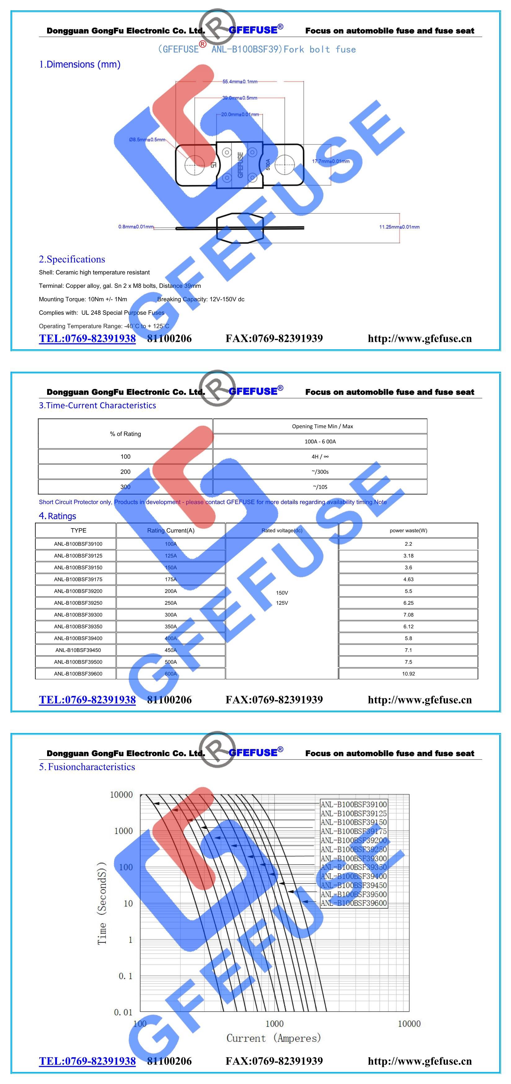 ANL-B100BSF39 100A-600A 125V150V陶瓷叉栓保險絲